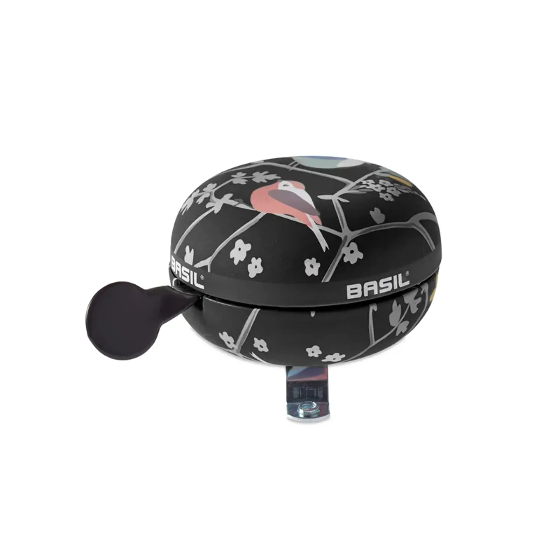 Let everyone know of your arrival with the Basil Big Bell Wanderlust in classic black with a signature bird print